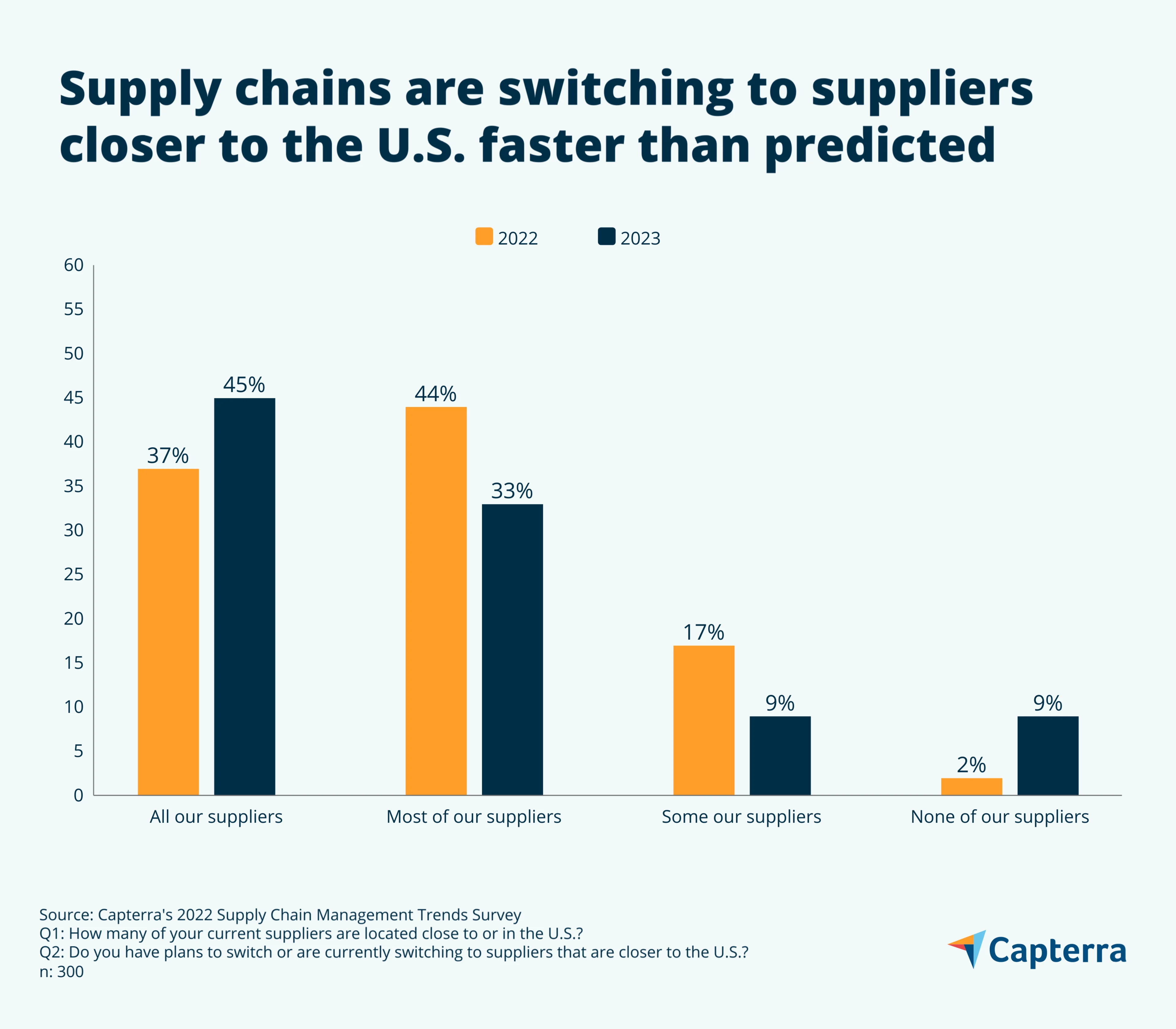 The trend towards nearshoring supply chains is happening faster than expected, according to research from Gartner-owned company Capterra.